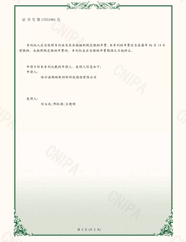 專利 權(quán) 人:哈爾濱鵬程新材料科技股份有限公司